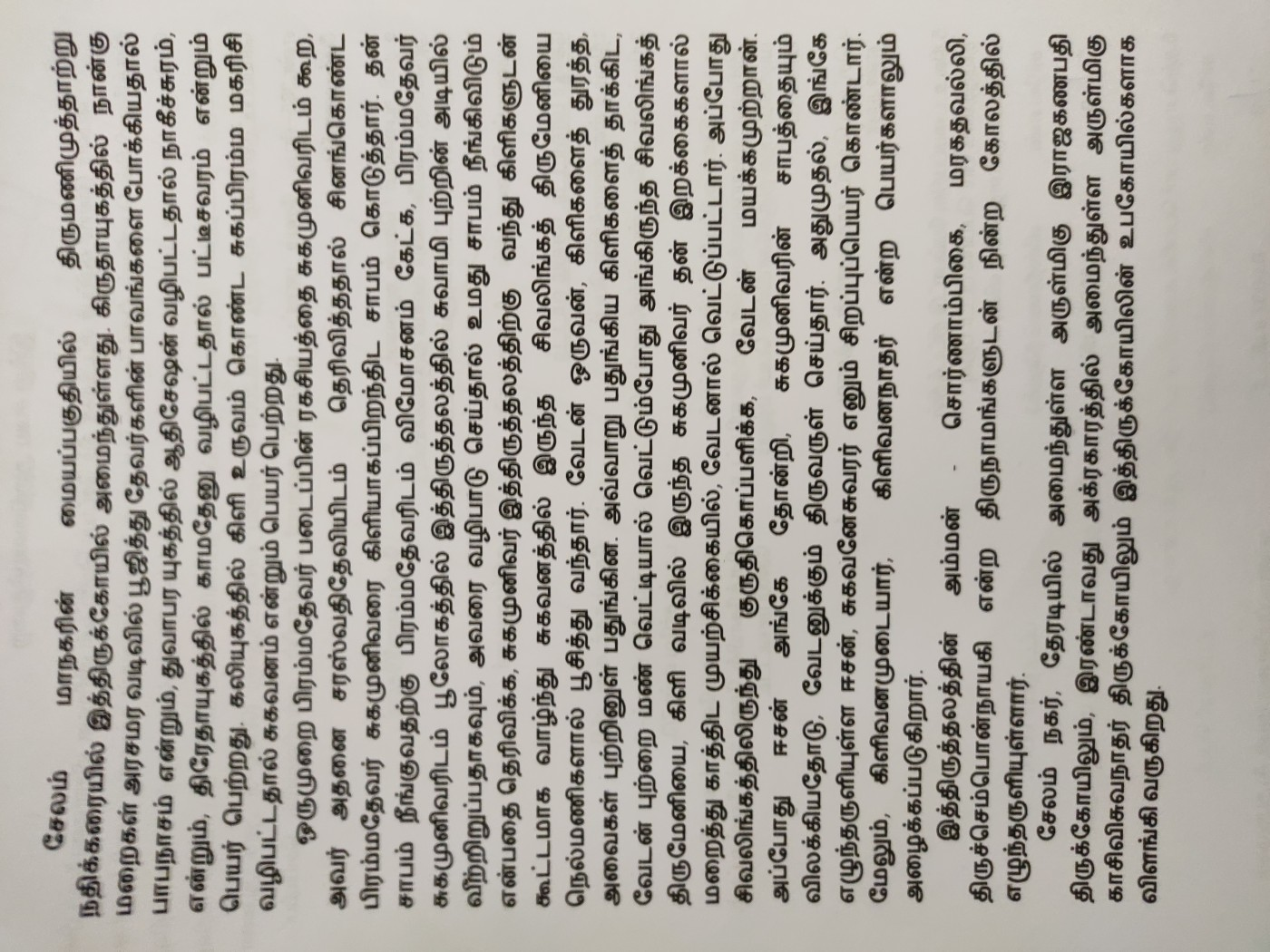 ஒருமுறை பிரம்மலோகத்தில் தேவர்கள், தவசிகள் என அனைவரும் பிரம்மதேவரின் படைப்புத்திறனைப் புகழ்ந்து பேசிக்கொண்டிருந்தனர். அப்போது படைப்பின் இரகசியத்தை பிரம்மதேவன் அவர்களுக்கு எடுத்துக்கூறினார். இதைக்கேட்ட சுகமுனிவர் (கிளிபோல் பேசும் தன்மையுடையவர்)சரஸ்வதியிடம் சென்று பிரம்மலோகத்தில் தான் அறிந்த படைப்பு இரகசியத்தைச் சரஸ்வதி தேவியிடம் கூறிவிடுகிறார். இதையறிந்த பிரம்மன், சுகமுனிவரிடம், காதால் கேட்டதைத் திரும்பச் சொல்லும் கிளியின் தன்மையைக் கொண்ட நீ கிளியாகக் கடவாய் எனச் சாபமிட்டார். தன் தவறை உணர்ந்த முனிவர், பிரம்மனிடம் சாபம் நீங்க வழி கேட்க, பாபநாசத்தில் சுயம்புமூர்த்தியாகி புற்றின் அடியில் வீற்றிருக்கும் இறைவன் சிவபெருமானை வழிபாடு செய்தால் உமது சாபம் நீங்கிவிடும் என்றார். அதன்பின் சுகமுனிவர் இத்திருத்தலத்திற்கு வந்து கிளிகளுடன் கூட்டமாக வாழ்ந்து சுகவனத்தில்...சேலம் சுகவனேசுவரர் திருக்கோயில், சேலம் நகர்